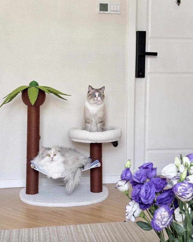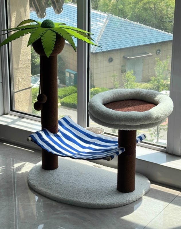 Bring beach vibes home with the Summer Coconut Island Cat Tree. A breezy hammock invites naps, while sisal-wrapped posts satisfy daily scratching. Felt leaves, jingly “coconuts,” and a stable base create a playful, comfy oasis for cats of all sizes.