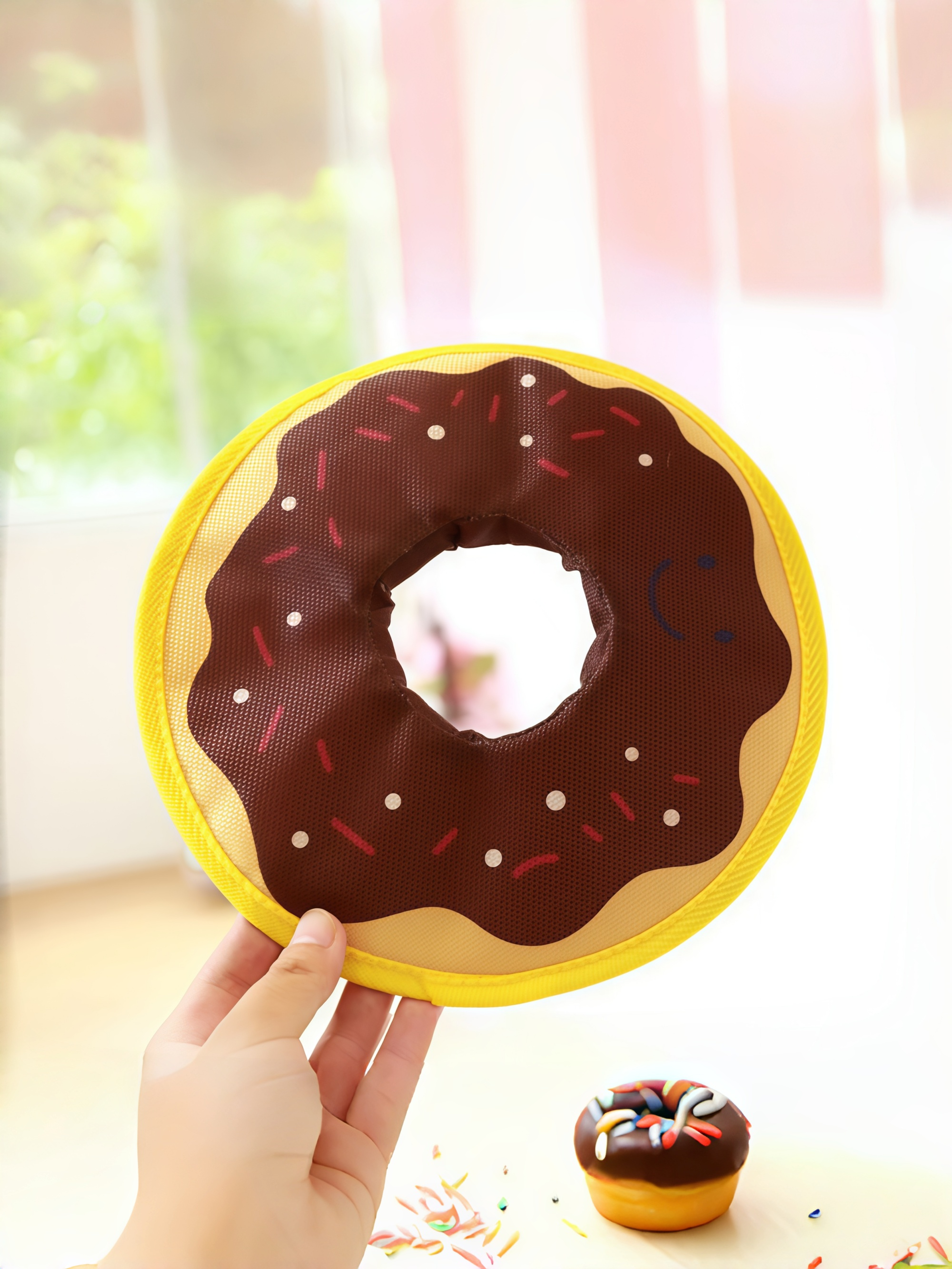 A tooth-friendly, fabric frisbee shaped like a cheerful donut. The lightweight build flies steady, while the crinkle sound keeps pups engaged. Great for fetch, recall, and energy release—gentle on mouths, fun anywhere. -