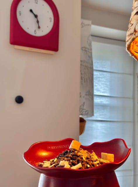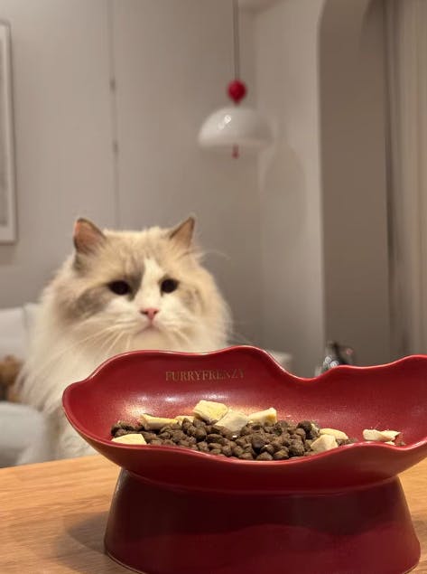 An artisan, raised ceramic bowl that soothes anxious eaters and protects chins. A higher front wall screens distractions; a lower rear curve eases swallowing. Oval waves spread food for slower bites. Each double-glazed color is uniquely kiln-changed and food-safe. -