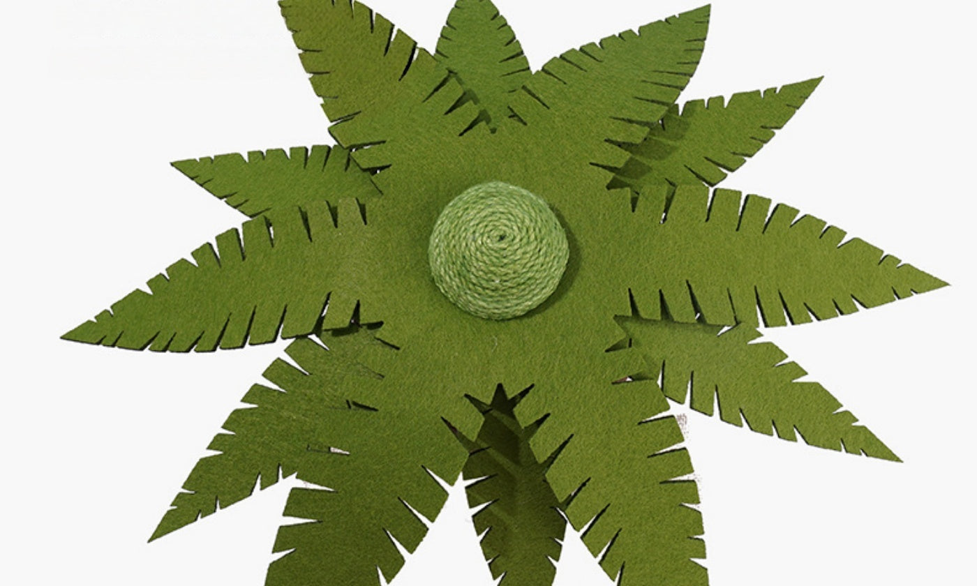 Bring beachy fun home. This coconut-tree scratcher wraps a sturdy trunk in thick natural jute for satisfying claw care, with a rattle play ball to entice swats. A 0.79" thick MDF base adds stability, while soft felt leaves complete the tropical look—great for daily stretch, scratch, and play. -