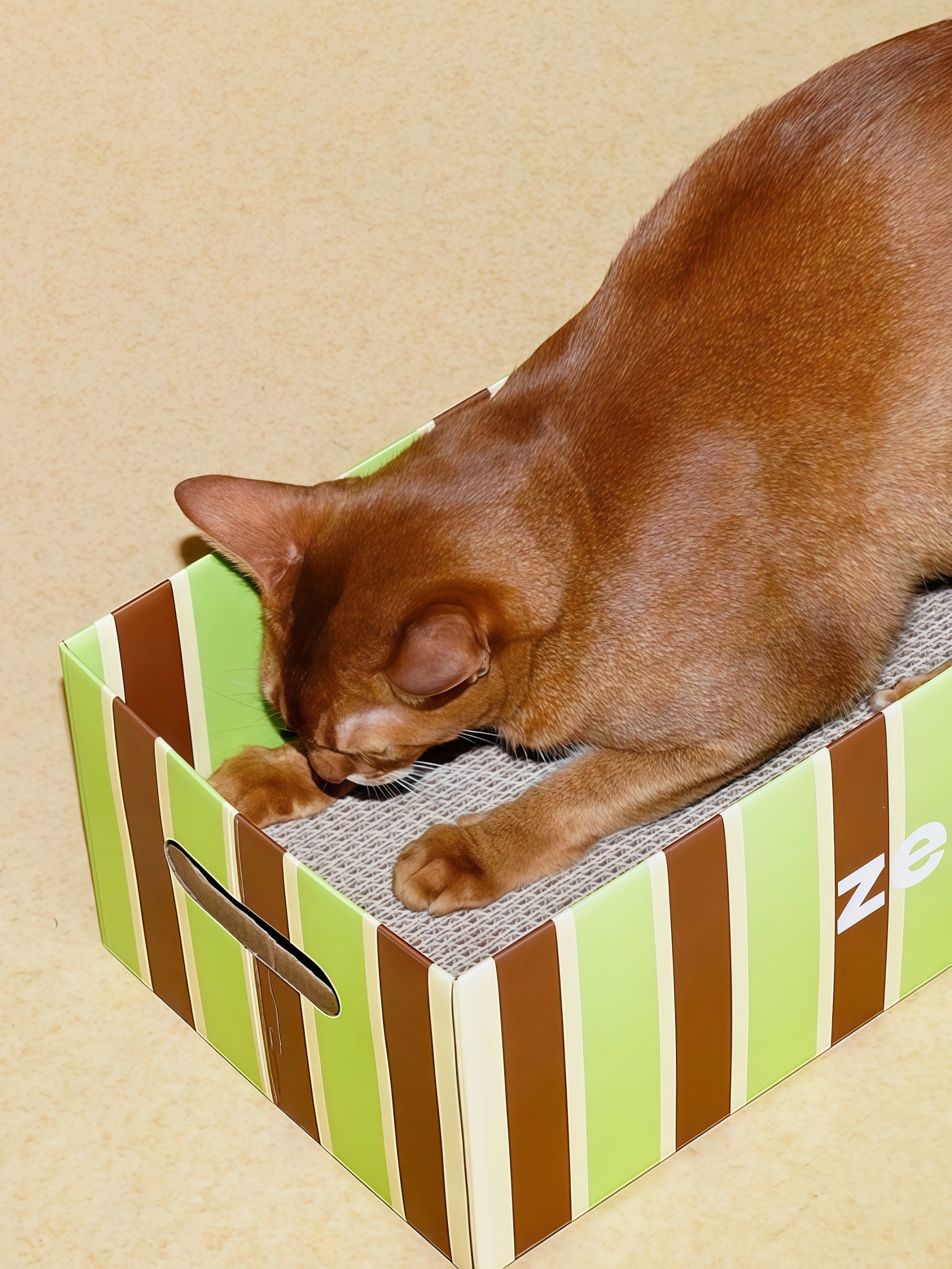 A cozy box to scratch, nap, and play.