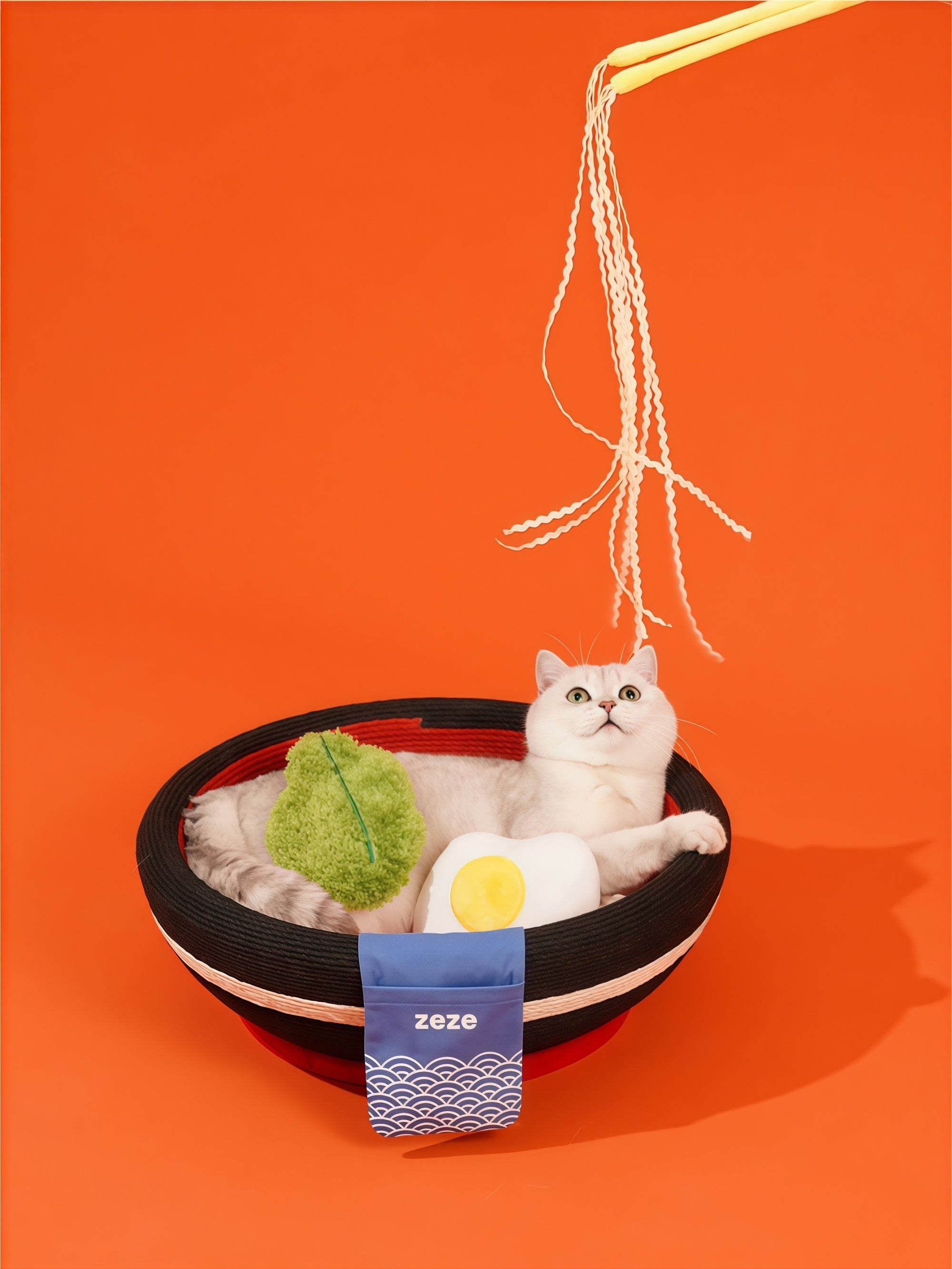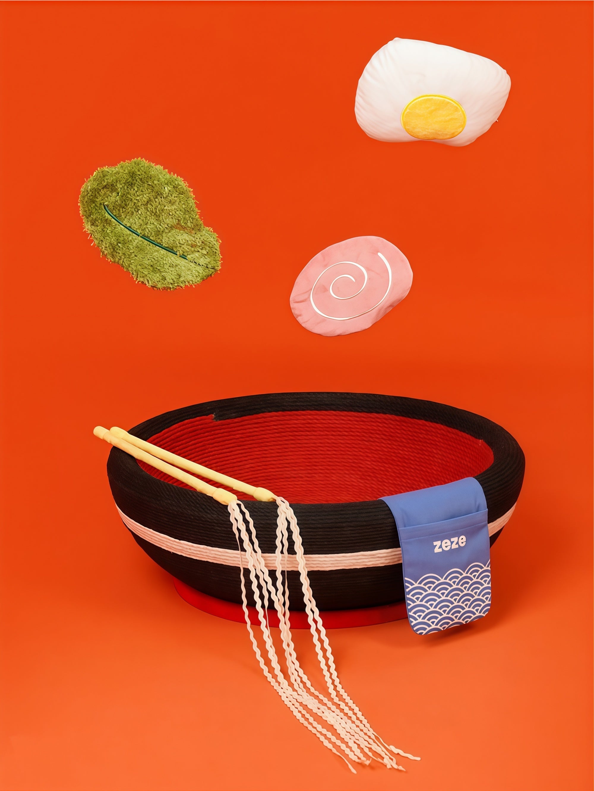 A cozy ramen bowl for scratch, play, and nap.