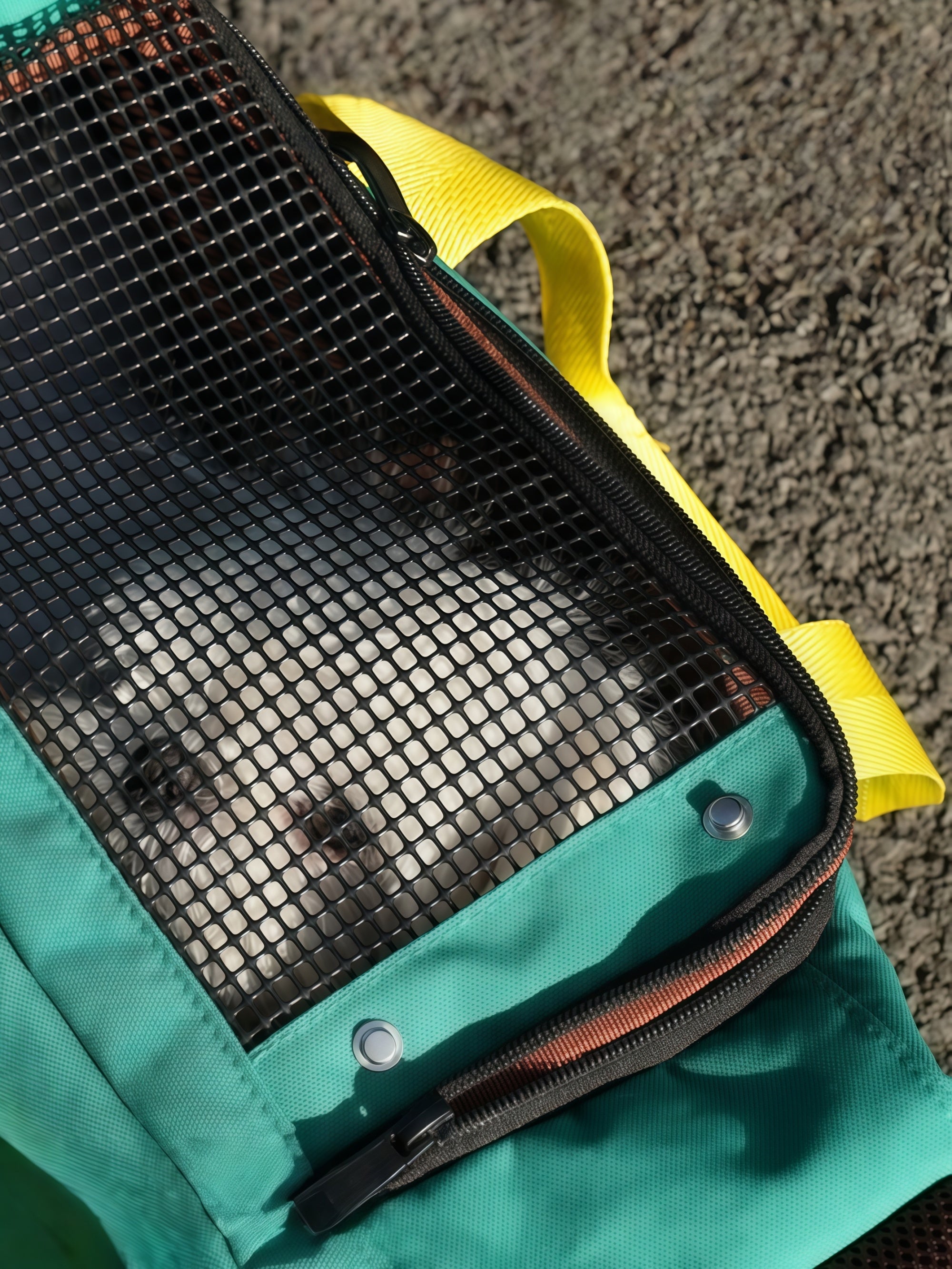 The Sport Crossbody Pet Carrier blends style with comfort: a breathable top mesh, peek window, and reinforced base keep pets calm and supported, while a wide strap and pockets make daily walks light and hands-free. -